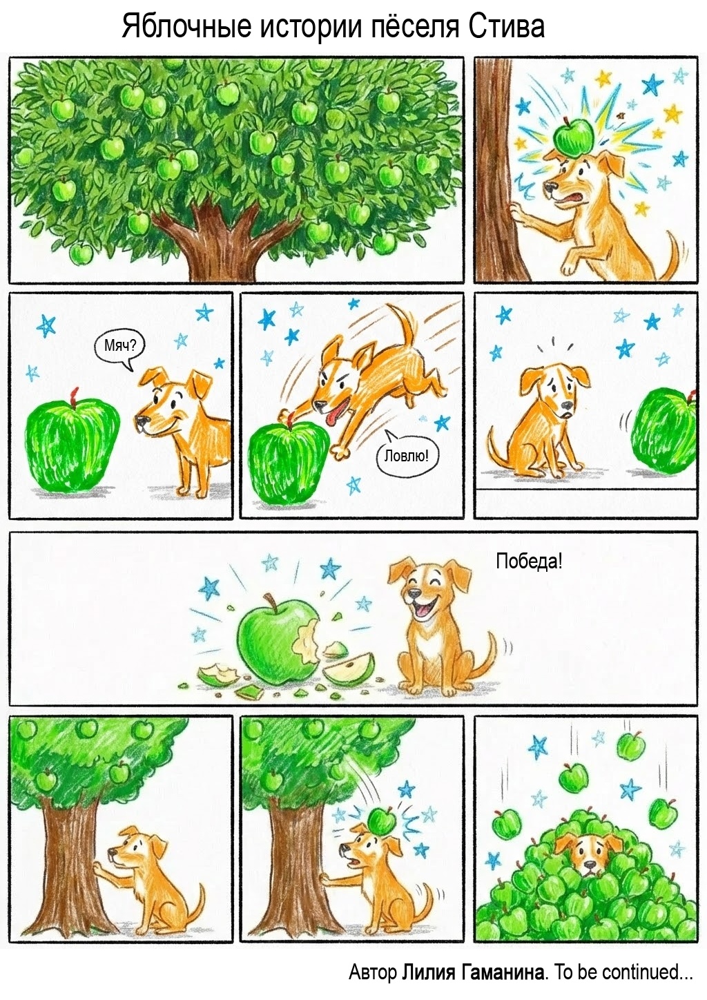 Знаете, я в душе очень похожа на комичного пёселя Стива. У Стива вообще талант, где нормальные люди ищут стабильность, он ищет на свою голову “оно самое”. Приключение. Друга. Чужую котлету. Если котлеток нет, то достаточно и зелёное яблоко. Иногда можно всё сразу. Но почему то встречаются только зеленые яблоки.